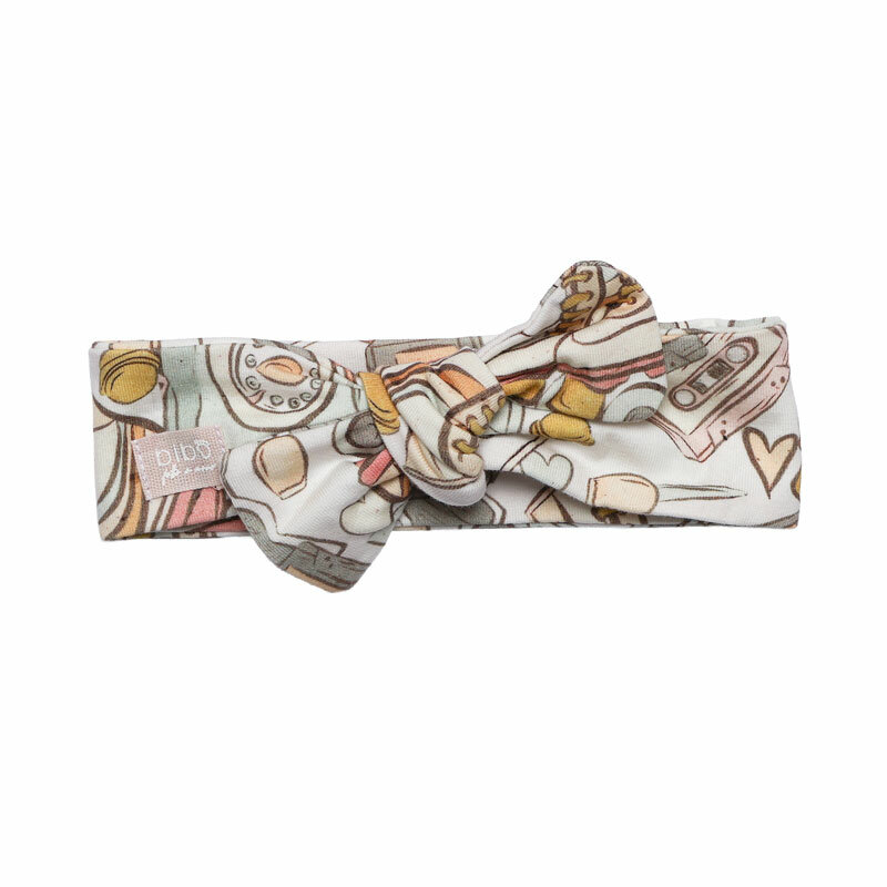 Fascia per capelli in jersey di cotone fantasia pattini a rotelle, annodabile.
