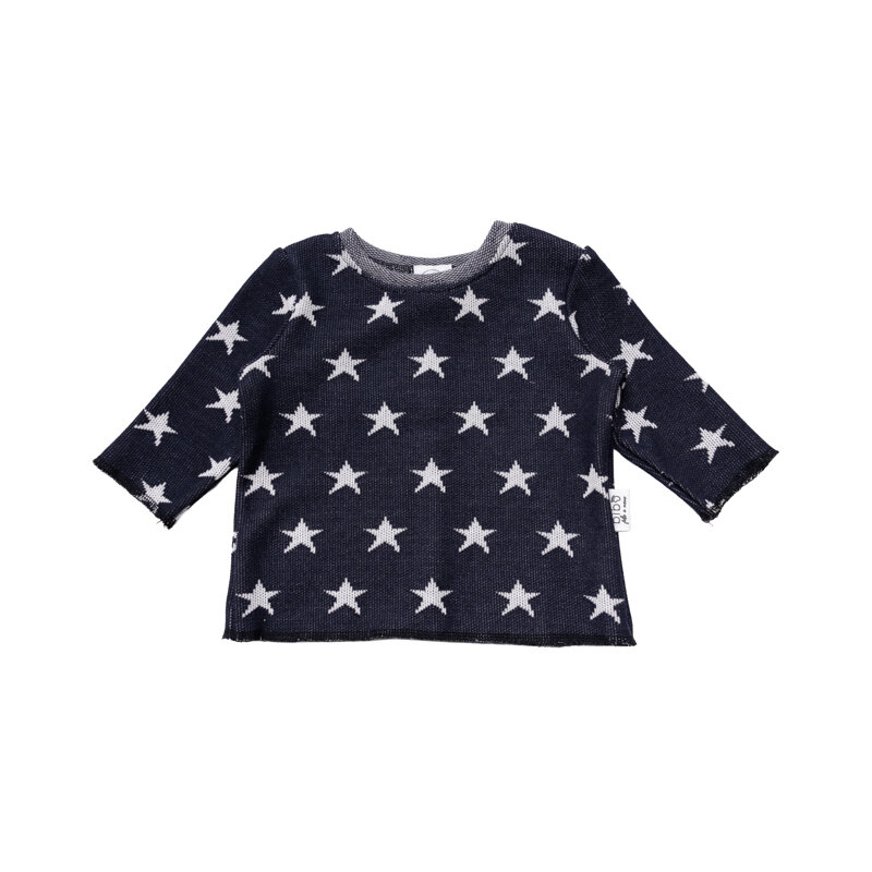 Maglia unisex in cotone lavorato , colore blu con stelle bianche, modello comodo con rifiniture a vivo e girocollo a rovescio.