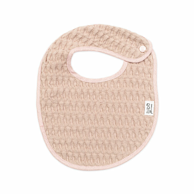 Bavaglino in spugna di cotone a nido d’ape col. rosa antico bordatto con bottone a pressione in plastica .