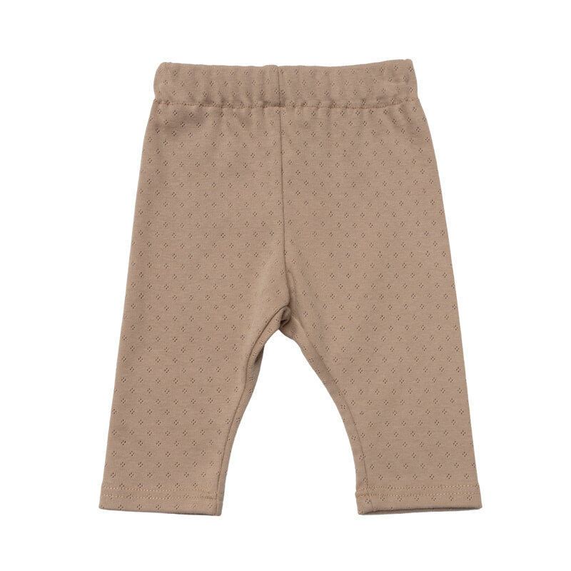 Pantalone in maglia di cotone, color cacao, modello leggings con elastico in vita.